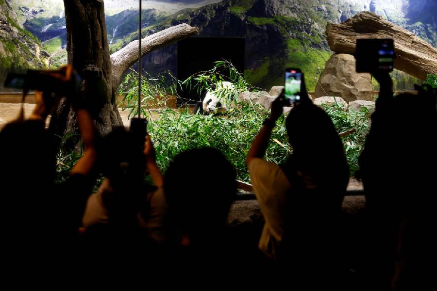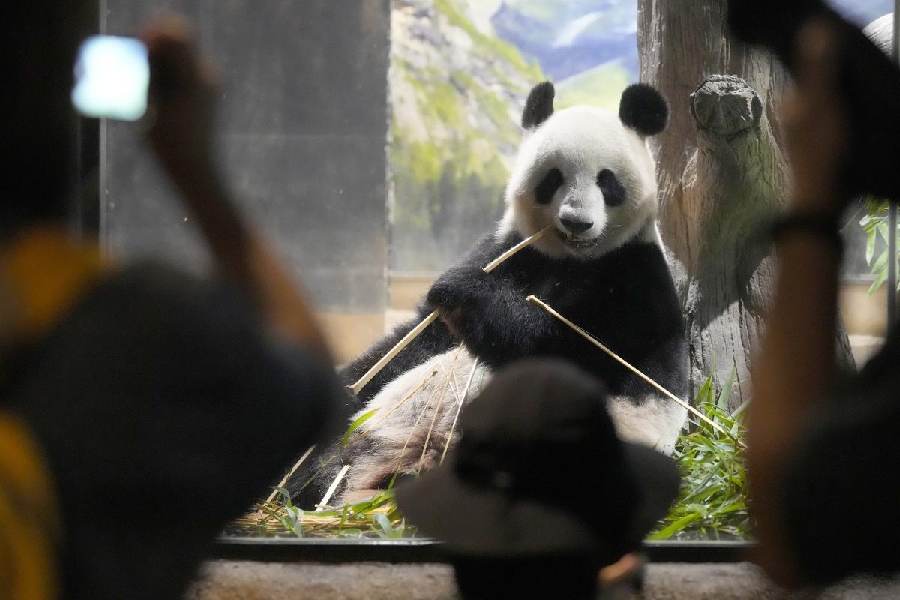 More than 2,000 visitors, many wearing T-shirts and carrying items decorated by panda motifs, queued outside the zoo hours before the opening. Some said they camped out overnight to secure their chance.