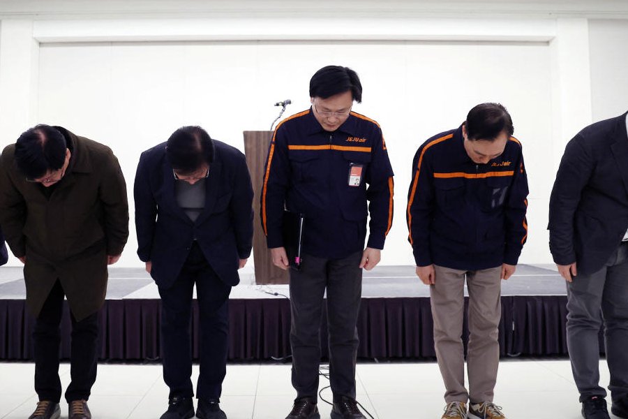 In a televised news conference, Kim E-bae, Jeju Air's president, deeply bowed with other senior company officials as he apologized to bereaved families and said he feels “full responsibility” for the incident. Kim said the company hadn't identified any mechanical problems with the aircraft following regular checkups and that he would wait for the results of government investigations into the cause of the incident.