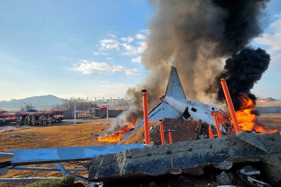 The National Fire Agency said rescuers raced to pull people from the Jeju Air passenger plane at the airport in the town of Muan, about 290 kilometres south of Seoul. The Transport Ministry said the plane was a 15-year-old Boeing 737-800 jet that was returning from Bangkok and that the crash happened at 9:03 am.
