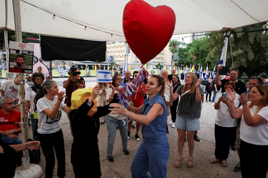 Einav Zaugauker, whose son Matan is one of the last hostages, rejoiced in Tel Aviv's so-called Hostages Square, where families of those seized in the Hamas attack that sparked the war two years ago have gathered to demand their return.