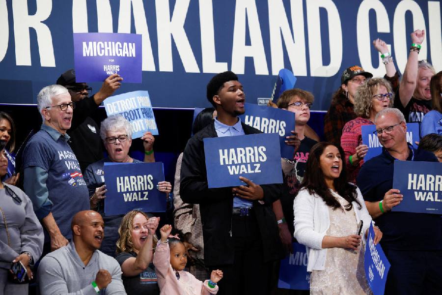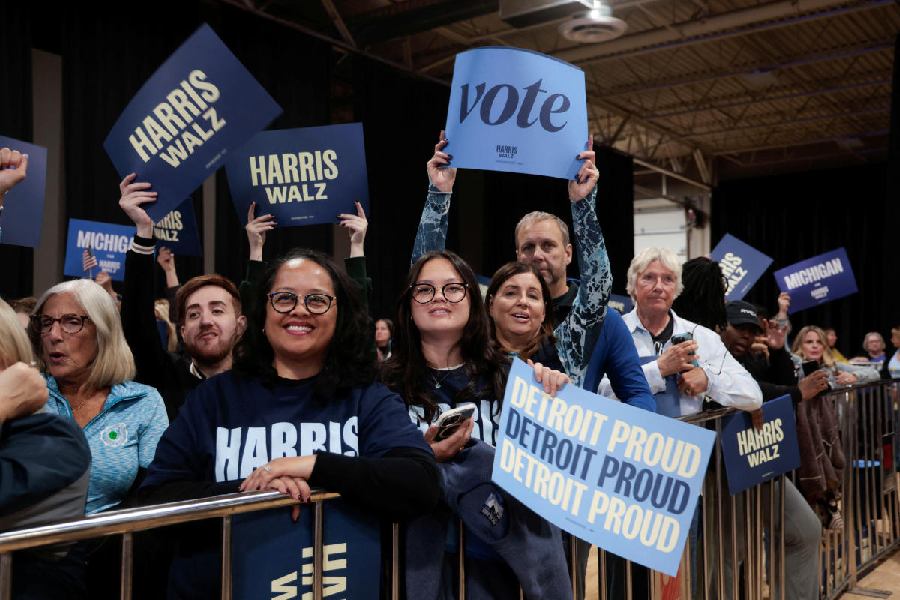 In Oakland County, Harris welcomed members of the Arab American community to her rally and touted prospects for peace in the aftermath of the death of Hamas leader Yahya Sinwar.