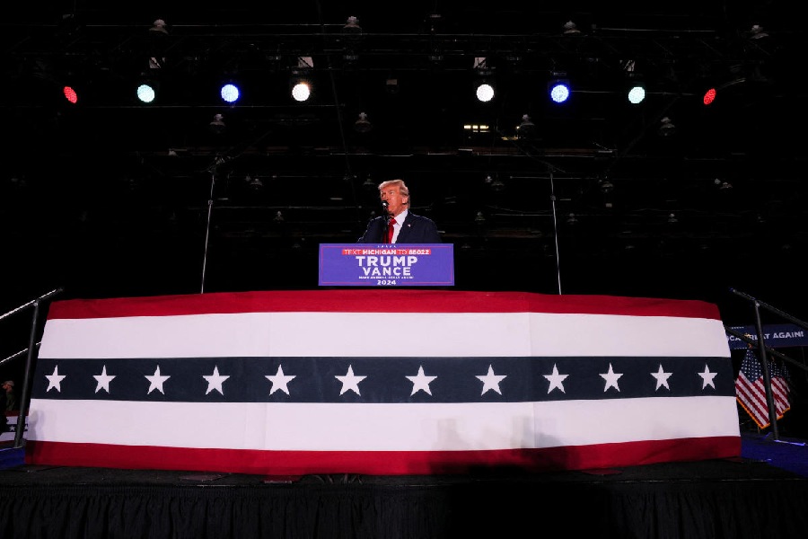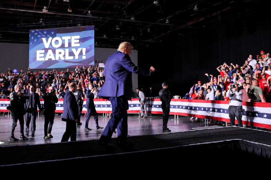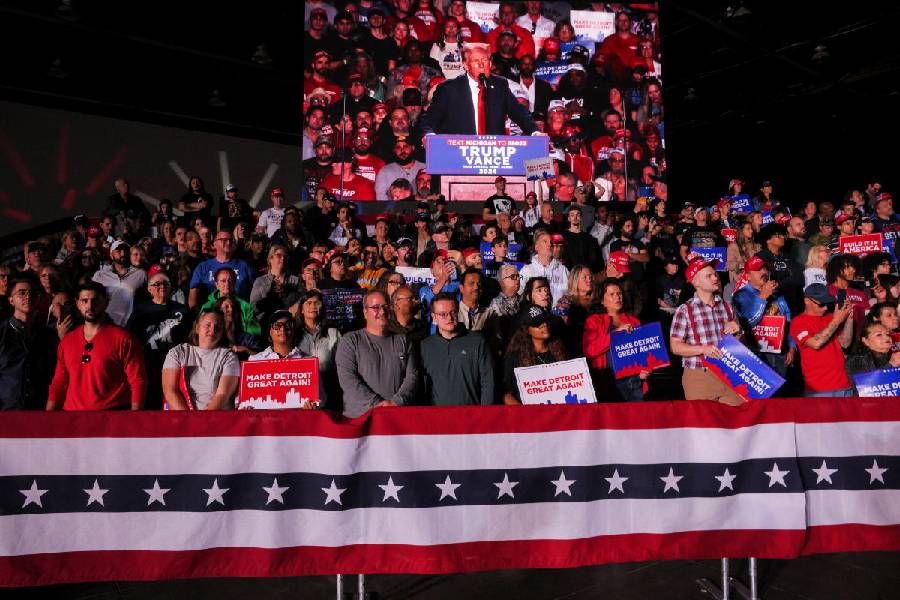 In the evening, Trump returned to Detroit, Michigan's largest city, for a rally after saying on Oct. 10 that the rest of the U.S. would turn into Detroit if Harris won.