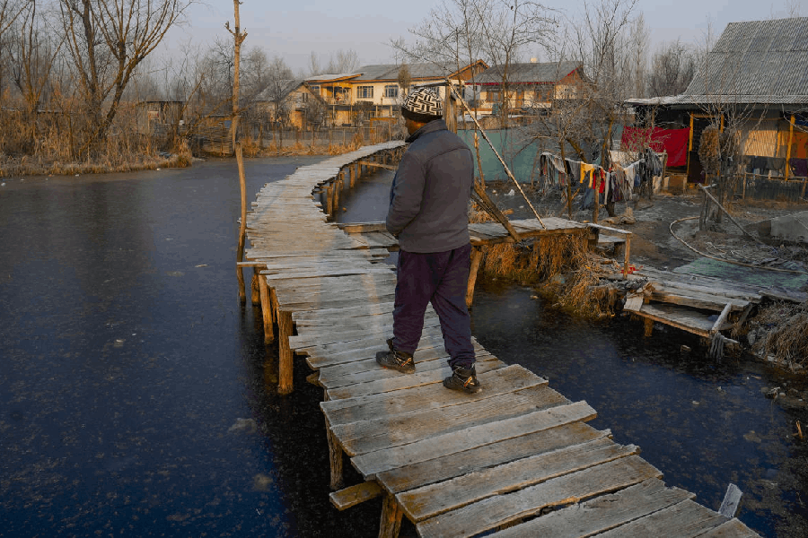 The bone-chilling cold led to the freezing of parts of several water bodies, including the interiors of the Dal Lake in Srinagar.