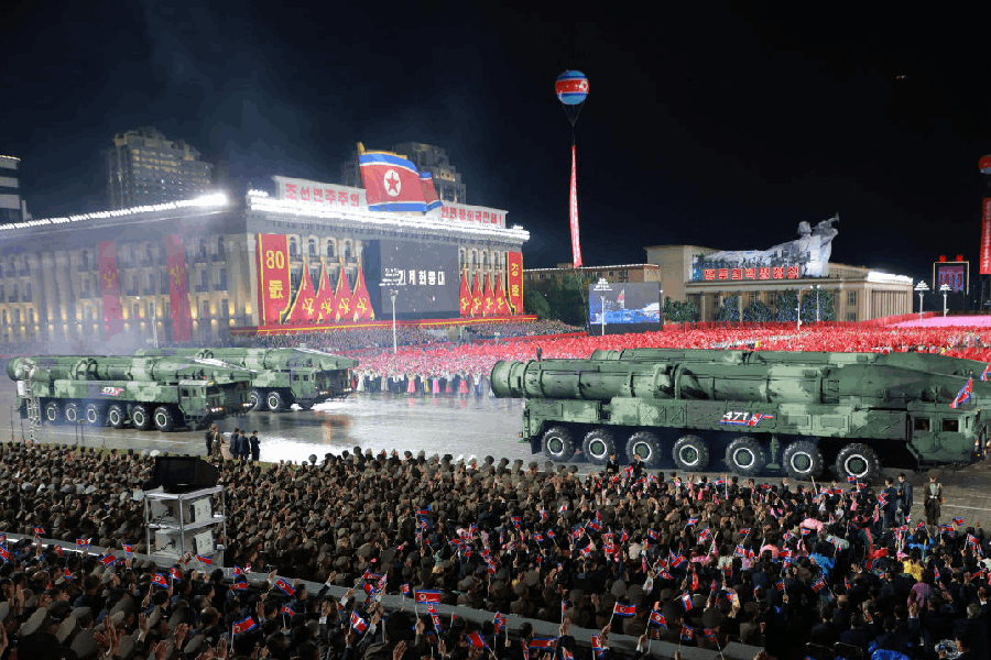 In the military parade, nuclear-armed North Korea displayed its most advanced Hwasong-20 intercontinental ballistic missile, described by KCNA as the country's "strongest nuclear strategic weapon system."