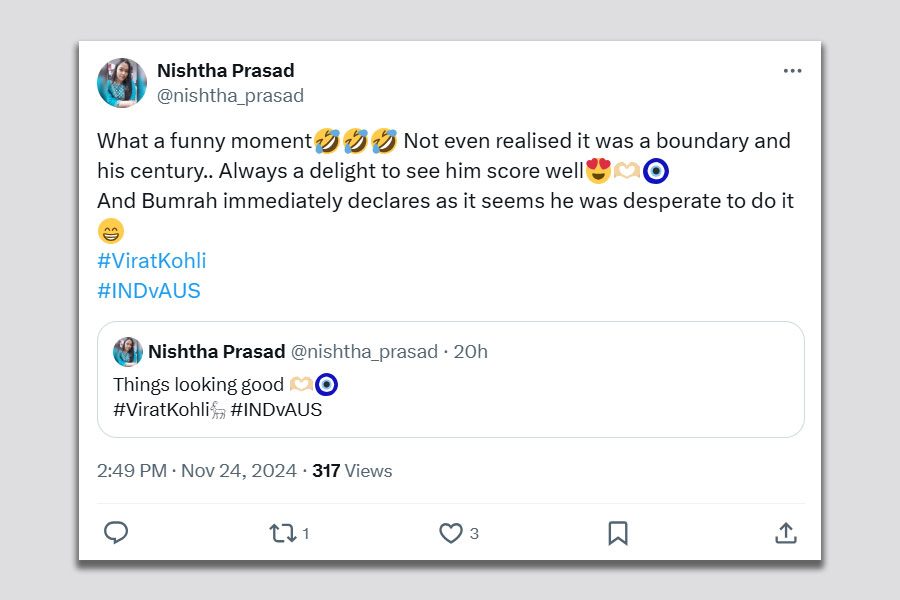 Another fan shared Virat Kohli’s reaction after reaching his century with a boundary: “Not even realised it was a boundary and his century. Bumrah immediately declares, seems desperate to bowl!”