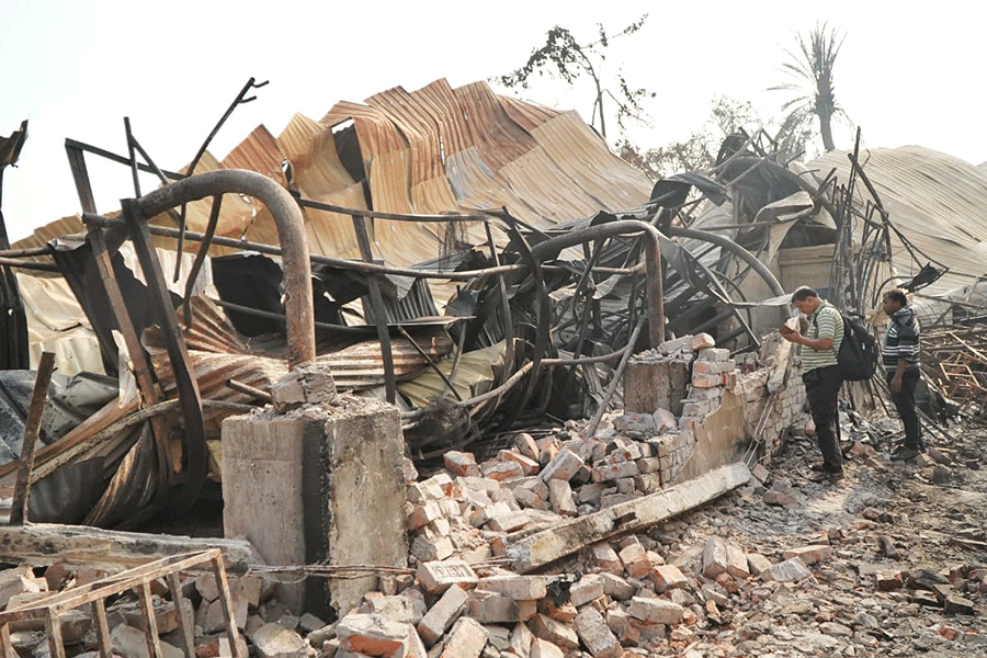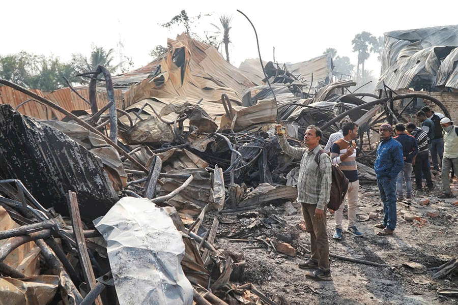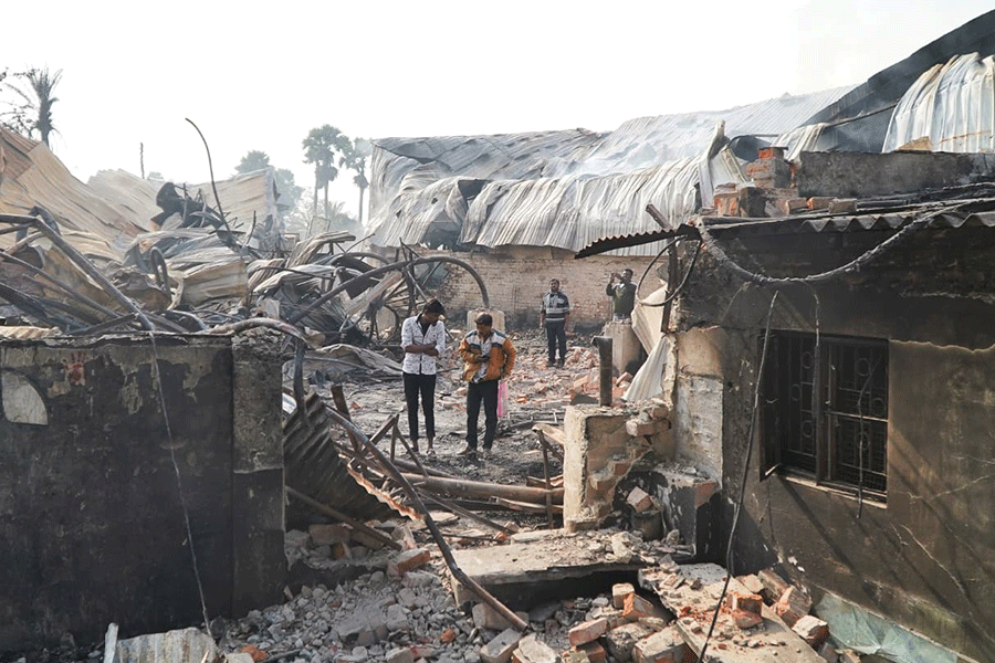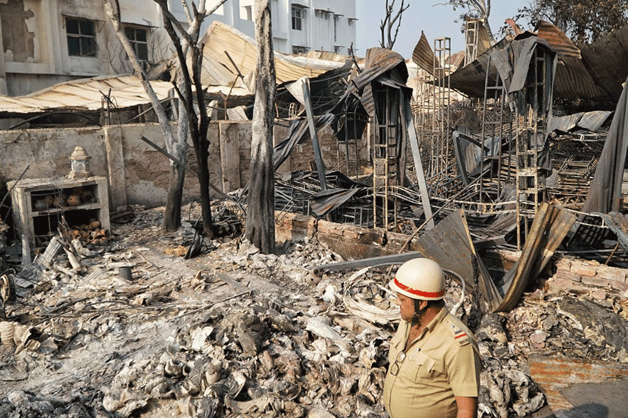 As many as 12 fire tenders were pressed into service, and the blaze was largely brought under control after nearly seven hours. However, pockets of fire continued to smoulder in several parts of the gutted structures, an official said.