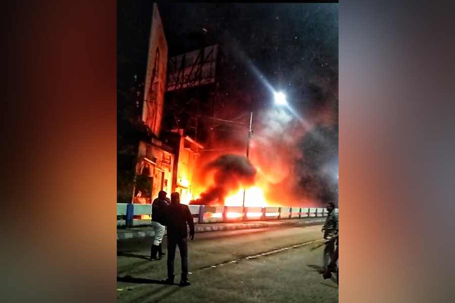 The blaze, which broke out near Durgapur Bridge, has halted vehicular movement on the bridge and disrupted train services on the Sealdah-Budge Budge line.