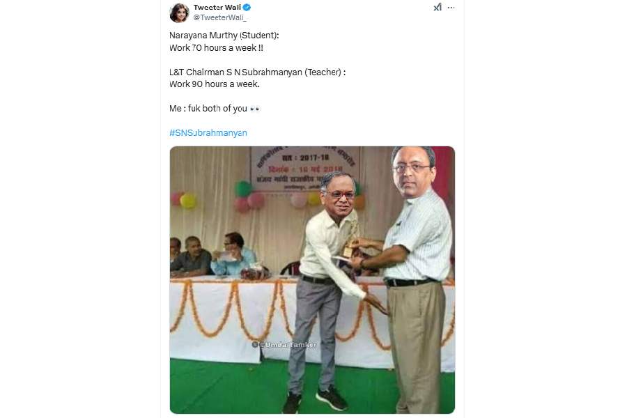 One post didn’t mince words: “Narayana Murthy (Student): Work 70 hours a week. L&T Chairman (Teacher): Work 90 hours a week. Me: Fuk both of you.”