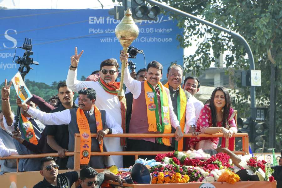 Fadnavis, accompanied by his wife Amruta Fadnavis, state BJP chief Chandrashekhar Bawankule and others boarded a decorated open-top vehicle at Nagpur airport. The route of the rally was dotted with banners welcoming the son-of-the-soil.