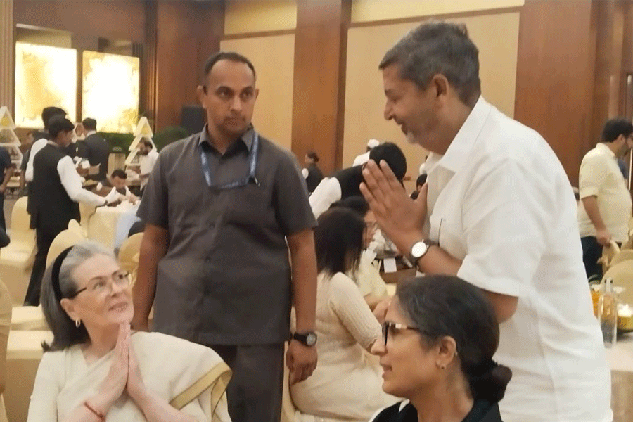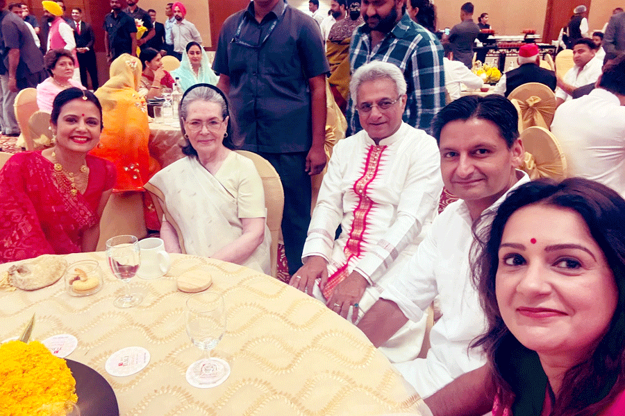 Among the notable attendees was Congress veteran Sonia Gandhi, who was seen in photographs shared by Virendra Singh on social media, seated at a dinner table with Rajya Sabha MP from Chhattisgarh Ranjeet Ranjan and greeting other leaders.