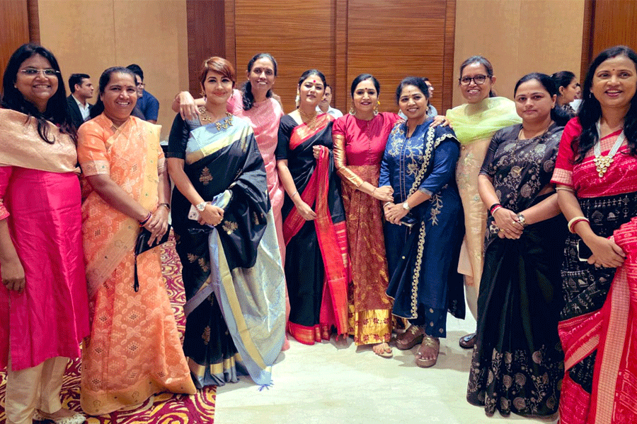 Moitra wore a bright red saree with golden embroidery and matching gold jewellery, while Misra opted for a white traditional outfit accented with a red embroidered border.