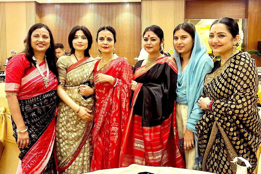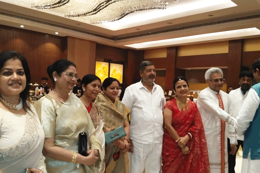 Pictures from the event show Moitra and Misra warmly welcoming guests and receiving blessings.