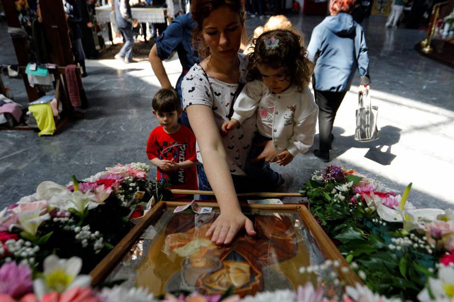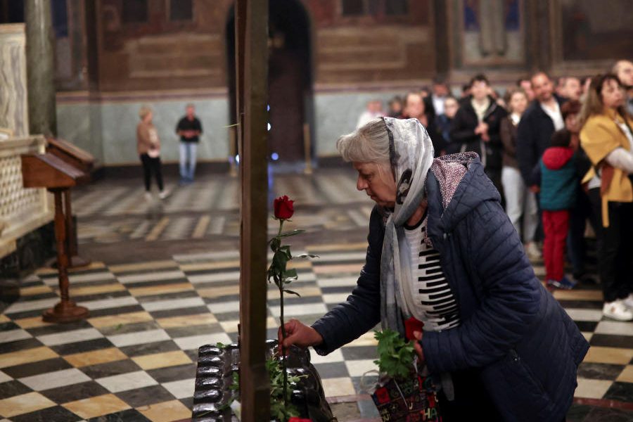 Worshippers gather for the celebrations for the Passion of the Lord at the Church of Saint Clement of Ohrid, on Good Friday, in Skopje, North Macedonia, April 18, 2025.