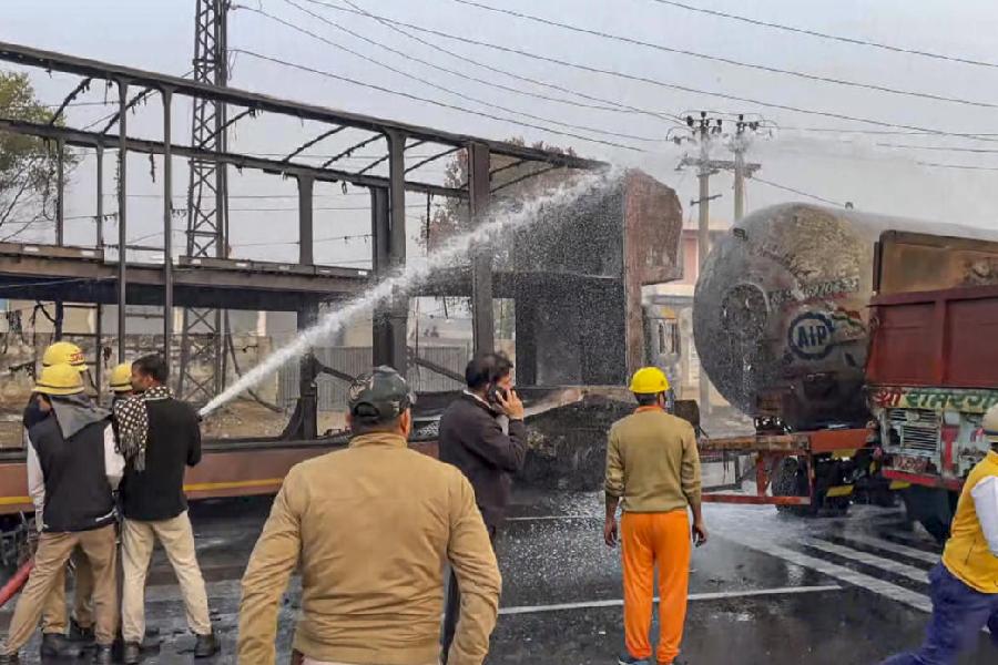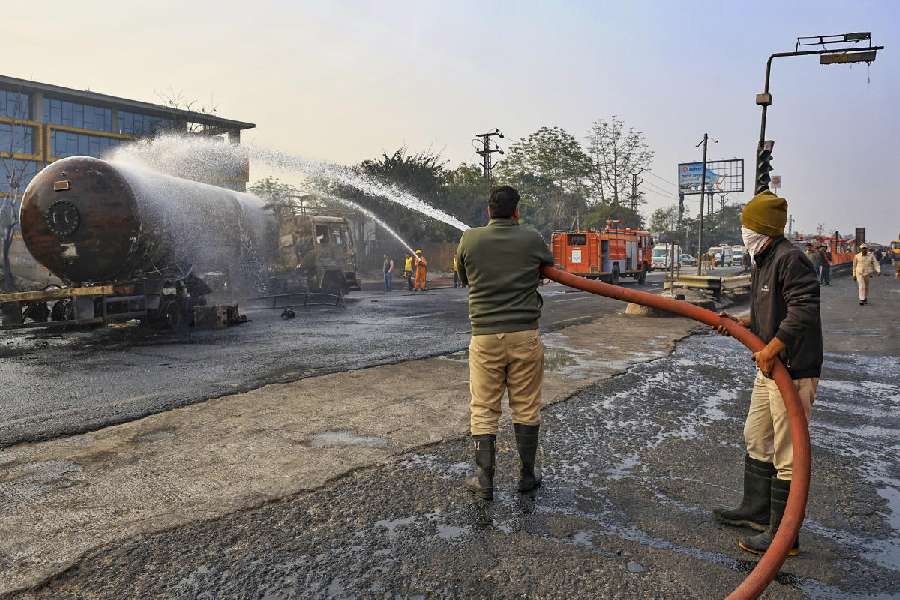 Jaipur Police Commissioner Biju George Joseph, who was at the crash site with several officers of his department, said an outlet nozzle of the LPG tanker was damaged in the collision, leading to a gas leak that caused the blaze.