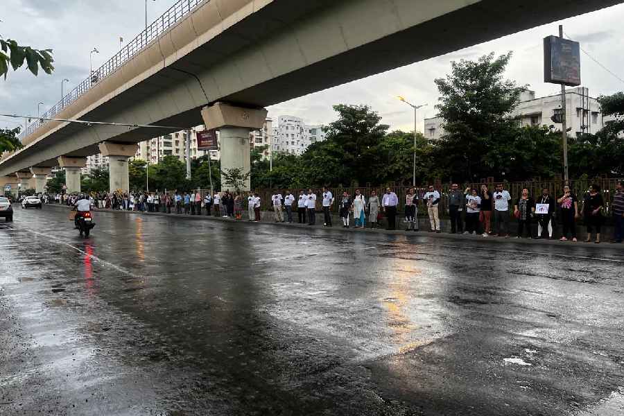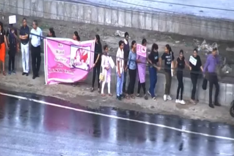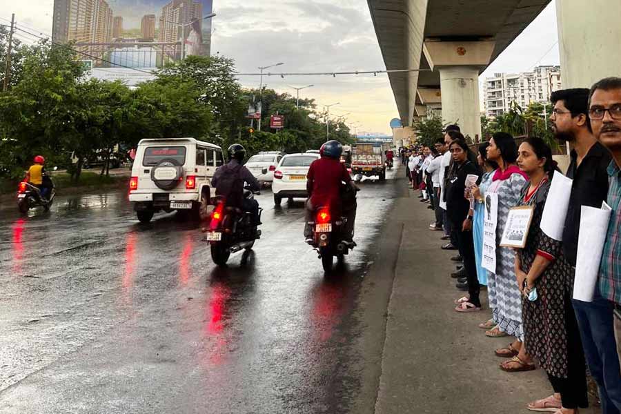 In the heart of Calcutta, doctors from across the city come together to form a massive human chain near Ruby crossing, standing united in their demand for justice for the RG Kar rape and murder victim.