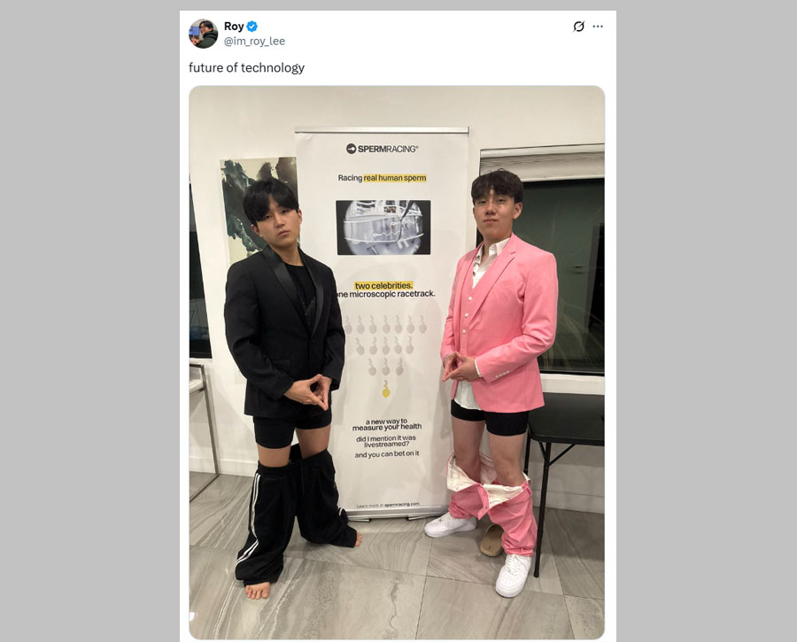 The announcement read, "‘Sperm Racing,’ founded by Eric Zhu (Aviato & Thor Ventures), Nick Small (youngest sold-out founder in crypto), Shane Fan (Waterfall Market), and Garrett Niconienko (MrBeast team), recently raised $1 million in a round led by Karatage, with participation from Figment Capital and Karman. The funds will support the development of the world’s first sperm race — a unique event combining health and sport.”