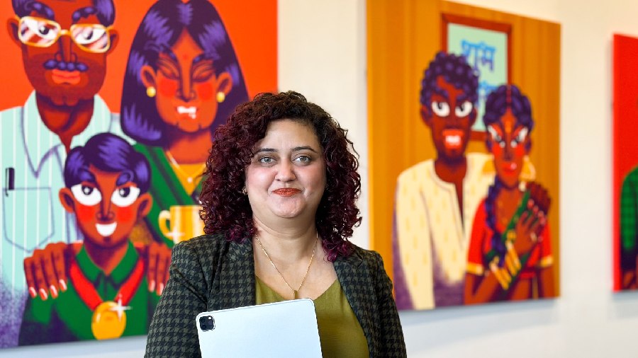 This year, the India Art Fair focuses on a distinct amalgamation of art and technology, including an extended Studio presenting its ‘Digital Artist in Residence’ programme, an online platform for artists to come up with new digital artworks. Based on the theme ‘Finding the Extraordinary in the Ordinary’, visual artist and illustrator Mira Felicia Malhotra has highlighted the oddities and idiosyncrasies of Indian family life in vibrant portraits of women titled “Log Kya Kahenge”.