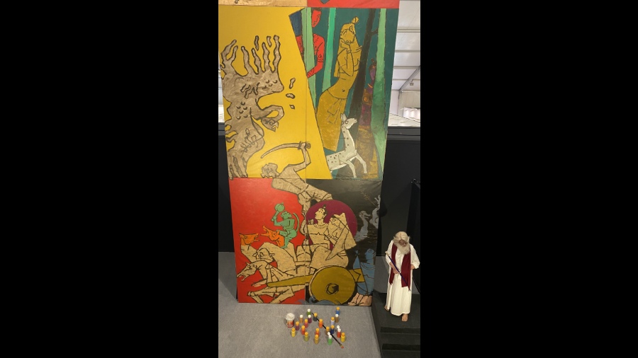 While a large section of the grand fair is dominated by contemporary artists, art lovers seem intrigued by ‘Valmiki’s Vision of Sunderkand’, one of MF Husain's last paintings, which is being exhibited at a booth by Crayon Art Gallery. The fair also features 10 leading cultural festivals, collectives and foundations, including soft sculptures and book projects by Britto Arts Trust (Dhaka); a series of textile panels by Lakshmi Madhavan for Devi Art Foundation (New Delhi); a group show with works by Siwan-based ceramicist Upendra Ram and Chari.