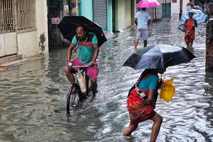 Water logging slowed traffic along CR Avenue, M G Road, BB Ganguly Street, Park Street, the north-bound lane along Diamond Harbour Road, and the south-bound one on APC Road.