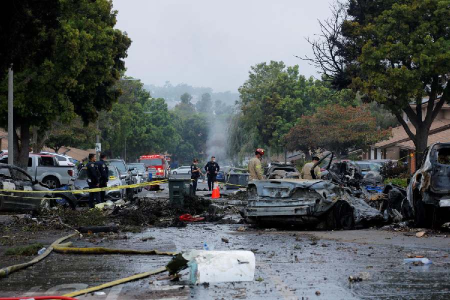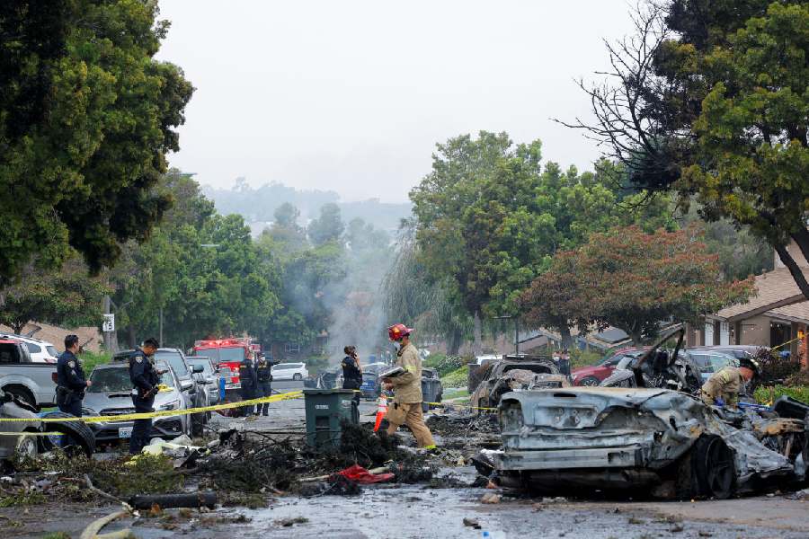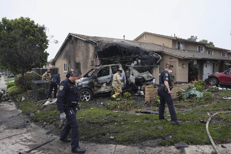 The home that was struck was destroyed, with its front heavily burned and its roof partially collapsed, and about 10 others were damaged in Murphy Canyon, the largest neighbourhood of Navy-owned housing in the country, officials said.