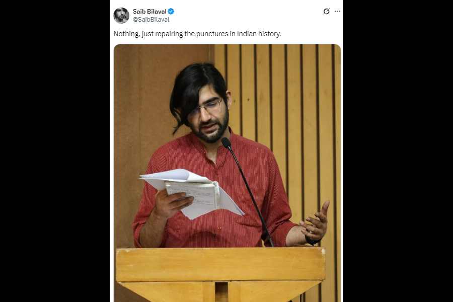 “Nothing, just repairing the punctures in Indian history,” read one post by a historian, pictured mid-lecture.