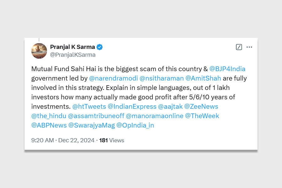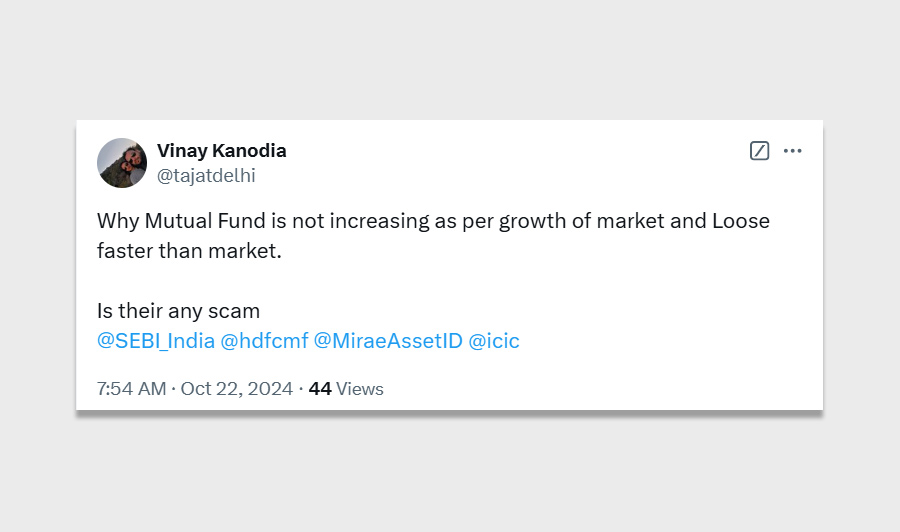 One user declared mutual funds the “biggest scam of this country,” dragging government policies and politicians into the mix. “Mutual Fund Sahi Hai is the biggest scam of this country & @BJP4India government led by @narendramodi @nsitharaman @AmitShah are fully involved in this strategy. Explain in simple languages, out of 1 lakh investors how many actually made good profit after 5/6/10 years of investments”.