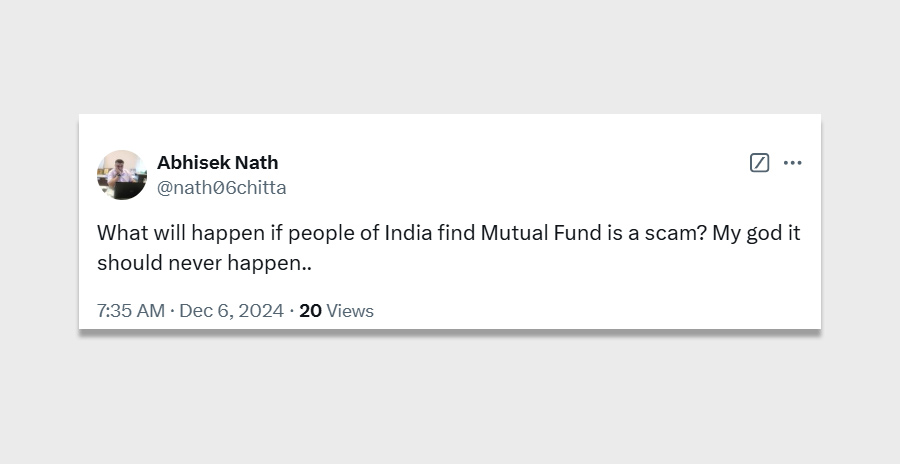 Another user shuddered at the thought of the public discovering mutual funds are a scam. “What will happen if people of India find that Mutual Fund is a scam? My god it should never happen..” stated the user.