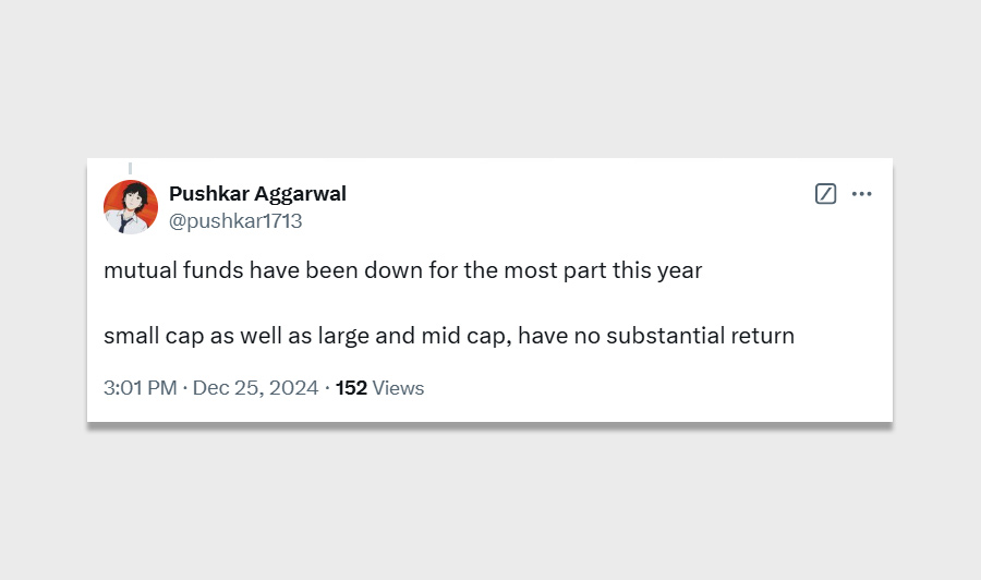 “Mutual funds have been down for the most part this year small cap as well as large and mid cap, have no substantial return” says the post.