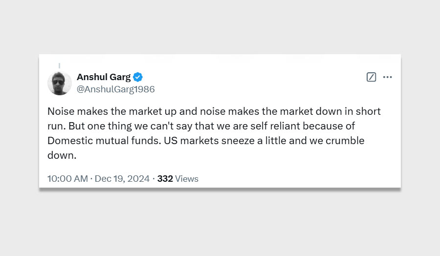 “Noise makes the market go up or down,” wrote another wise X user. “US markets sneeze, and we crumble.”