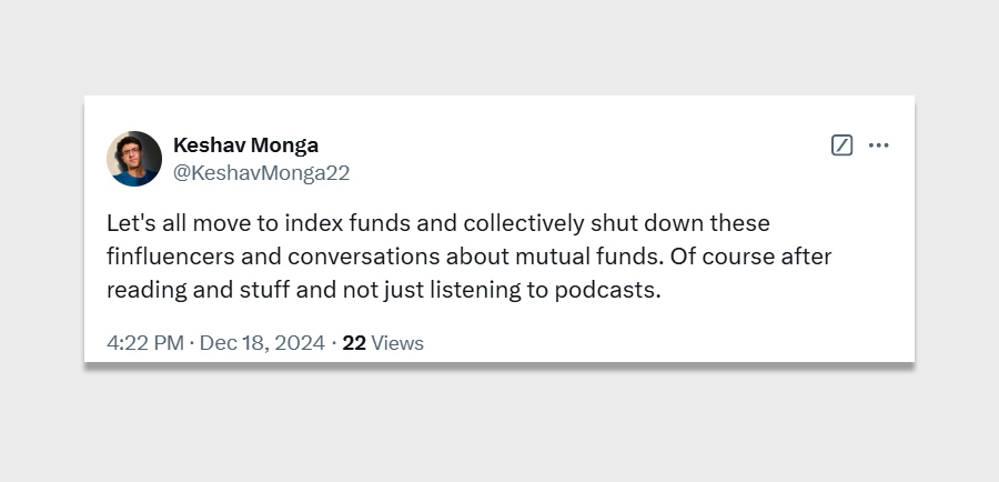“Let’s all move to index funds and shut down these finfluencers,” read a post advocating for a simpler approach. “Of course, after reading and not just listening to podcasts.” the post added