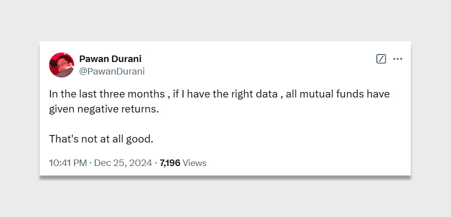 “If I have the right data, all mutual funds gave negative returns in the last three months,” wrote another user.