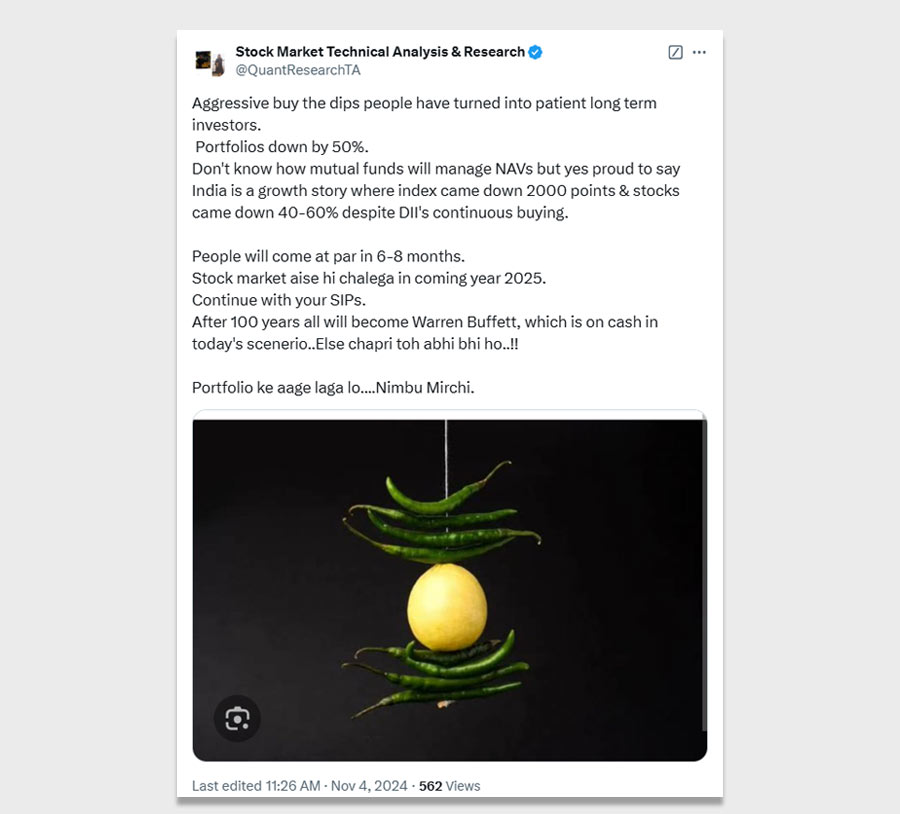 “Aggressive buy-the-dips people have turned into patient long-term investors,” lamented one user. “Portfolios are down by 50% …. People will come at par in 6-8 months.” added the post