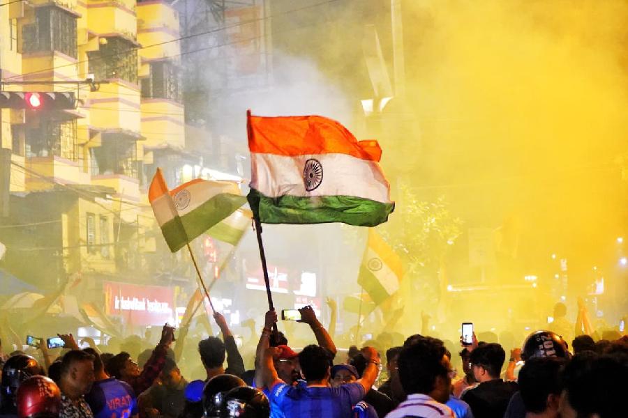 Fans celebrate India's World Cup win in Kolkata, Sunday, March 8, 2026.