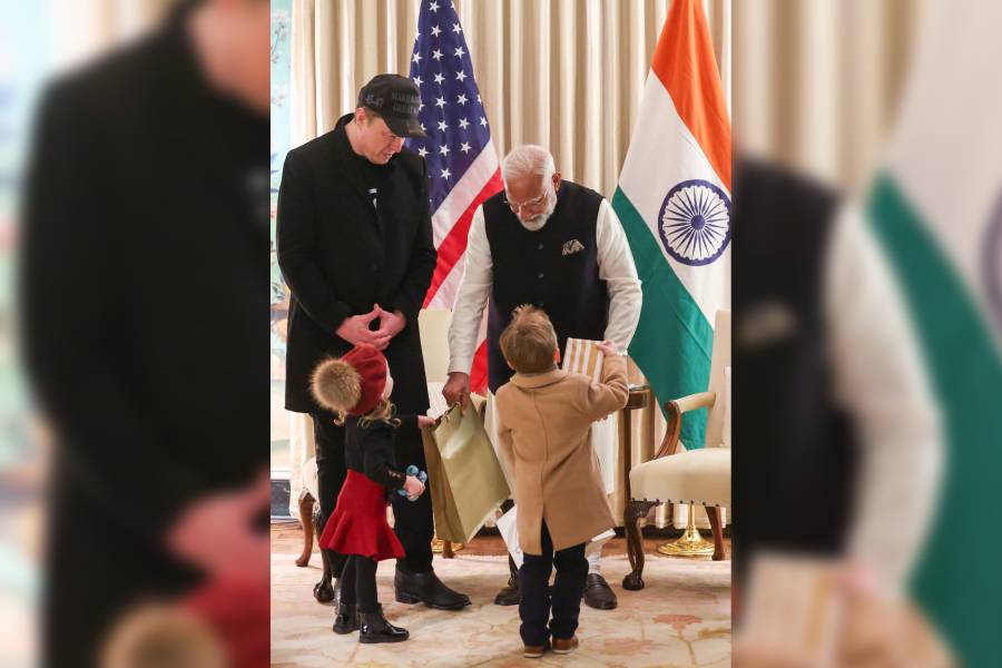 Modi chats with the DOGE chief’s three young children. (X/@narendramodi)