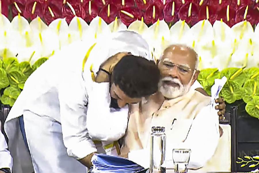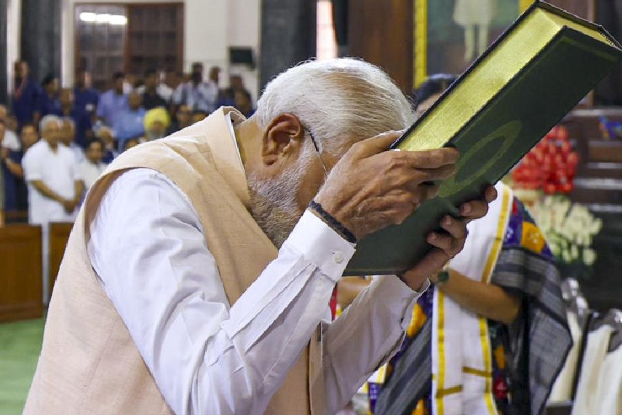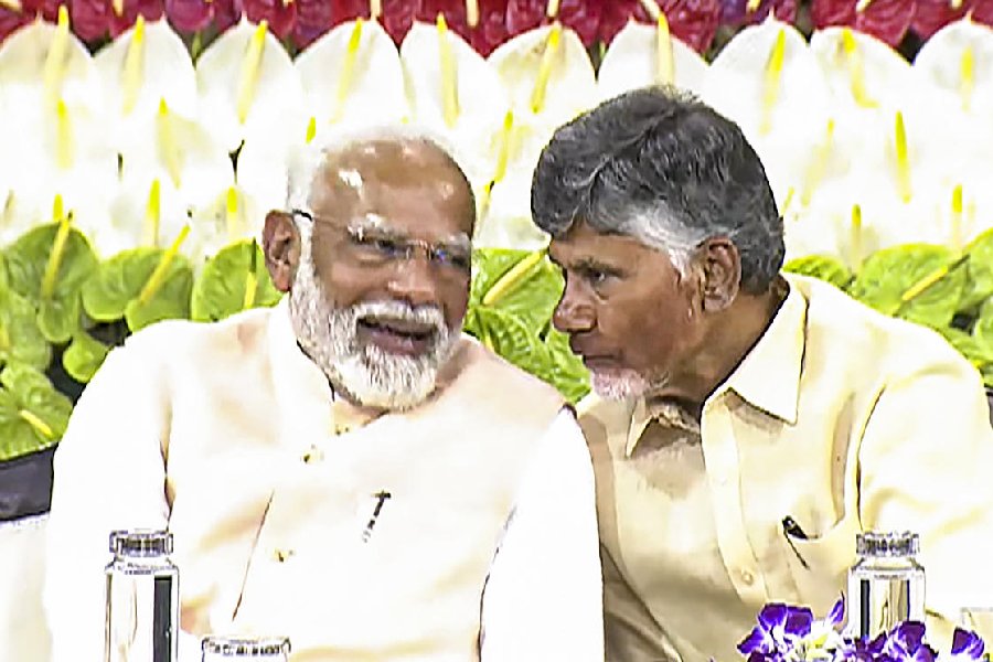 Senior BJP leader Narendra Modi with TDP chief N. Chandrababu Naidu during the NDA parliamentary party meeting at Samvidhan Sadan, in New Delhi on June 7. Senior NDA leaders, including H D Kumaraswamy, Chandrababu Naidu and Nitish Kumar, also supported the resolutions, paving the way for Modi to become prime minister for the third time.