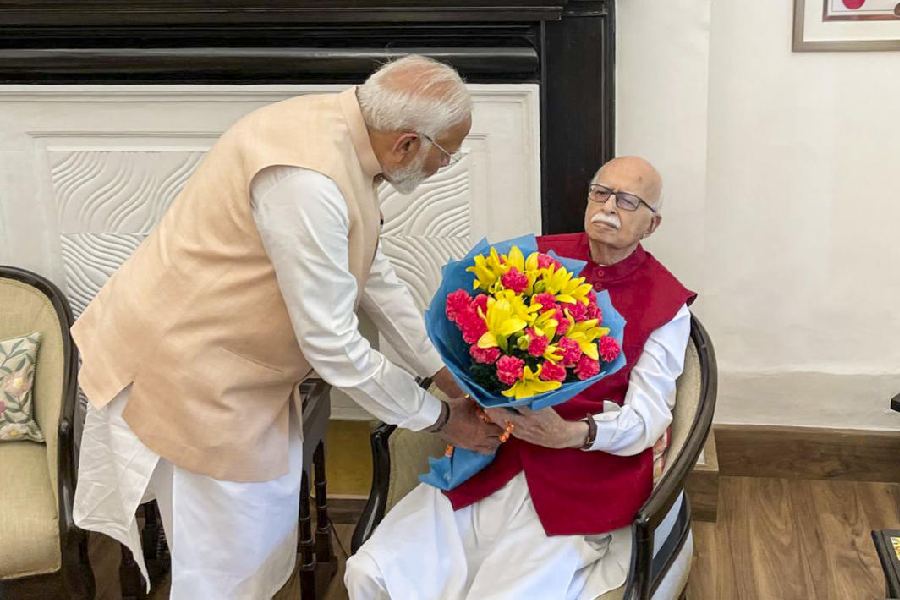 BJP leader Narendra Modi meets senior party leader L.K. Advani after he was elected as the leader of the NDA Parliamentary Party, in New Delhi on June 7.