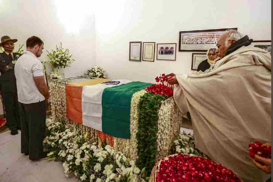 Top Congress leaders, including party president Mallikarjun Kharge and former party chiefs Sonia Gandhi and Rahul Gandhi, too paid their last respects to Singh. AICC general secretary Priyanka Gandhi Vadra and other leaders were also present.