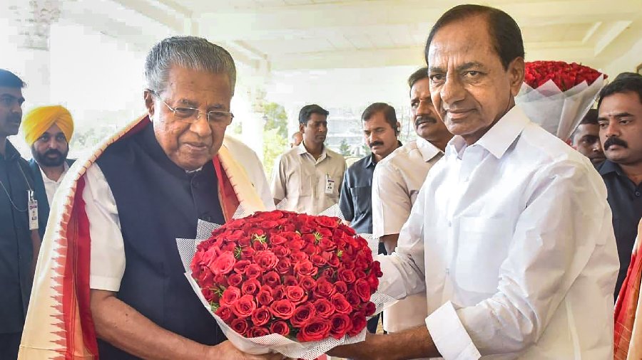 The BRS meet at Khammam town will see Delhi Chief Minister Arvind Kejriwal, his Punjab counterpart Bhagwant Mann, Kerala CM Pinarayi Vijayan, Samajwadi Party leader Akhilesh Yadav and CPI's D Raja sharing the dais with KCR.