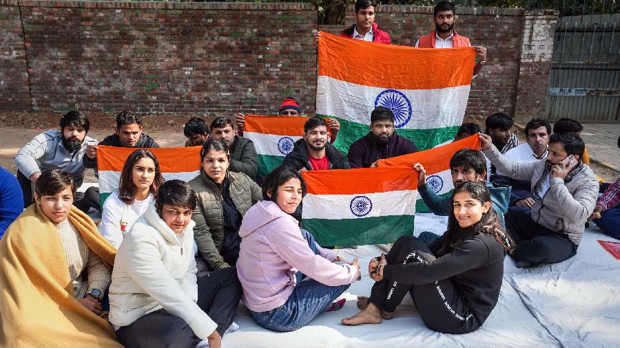 In an unprecedented move, the country's top wrestlers, including Tokyo Olympics bronze medallist Bajrang Punia and world championship medallist Vinesh Phogat, staged a protest against the "dictatorship" of national federation President Brij Bhushan Sharan Singh on Wednesday.