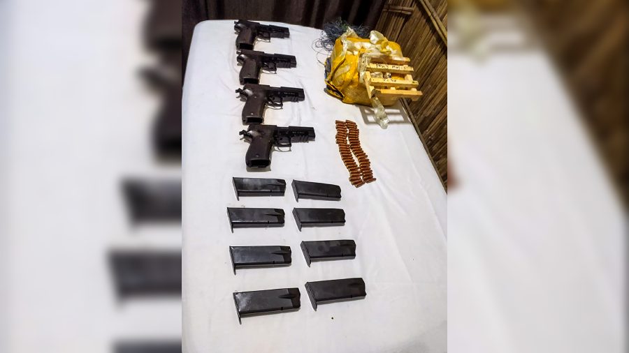 The Border Security Force (BSF) has seized a cache of weapons and ammunition dropped by a Pakistani drone around eight kilometres inside the Indian territory from the international border in Punjab, a senior official said on Wednesday.