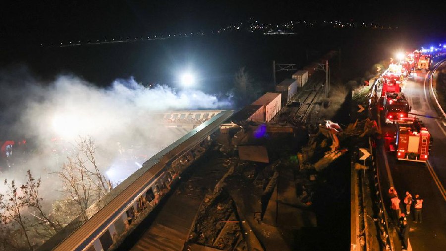 A passenger train and a cargo train collided head-on in Greece on Tuesday night, killing at least 36 people and injuring dozens as the country's deadliest rail crash in living memory threw entire carriages off the tracks.