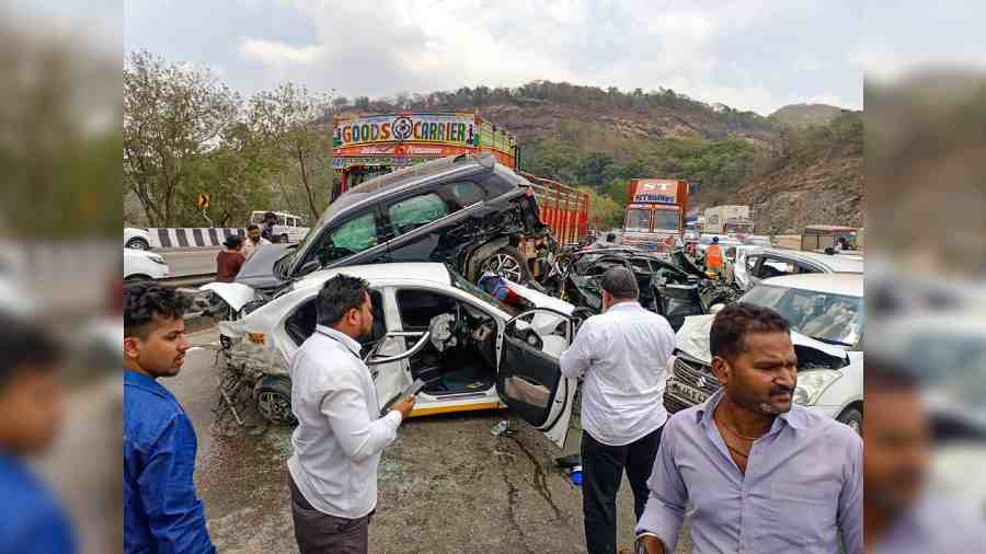 Six persons were injured on Thursday in a multiple-vehicle mishap that started when a truck hit a vehicle after its brake failed on the Mumbai-Pune Expressway, an official said.The truck hit at least 12 vehicles, leading to six persons suffering injuries, near Khopoli in Raigad district, he said."Police teams rushed to the site and sent the injured to the hospital. Vehicular traffic towards Mumbai was affected for some time," he said.