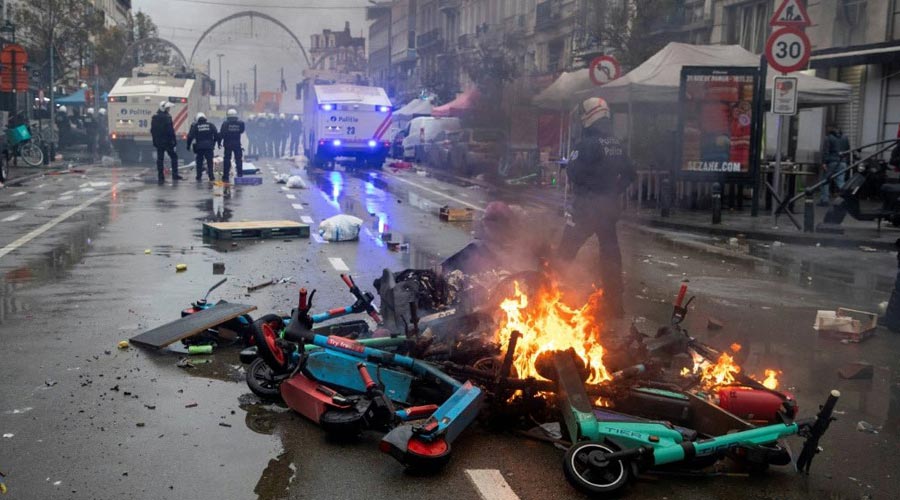 Belgian police detained a dozen people and made one arrest on Sunday after Morocco's victory over Belgium in the World Cup match in Qatar triggered riots in Brussels with a car and some electric scooters set on fire.