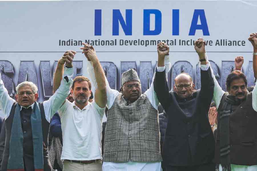 Opposition INDIA bloc staged a protest at Jantar Mantar in New Delhi against the suspension of 146 MPs from the two Houses of Parliament during the Winter session and called on people to unite to save democracy in the country. Addressing the gathering, Congress president Mallikarjun Kharge said the leaders of INDIA parties have come together as democracy is under threat under the BJP government.