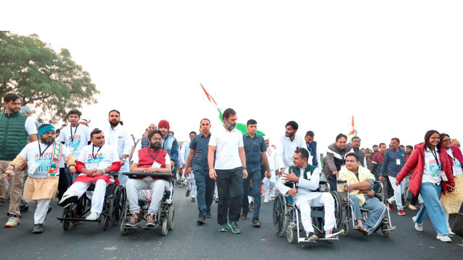 Rahul Gandhi walked with people with disabilities on International Day of Persons with Disabilities during the party's yatra.