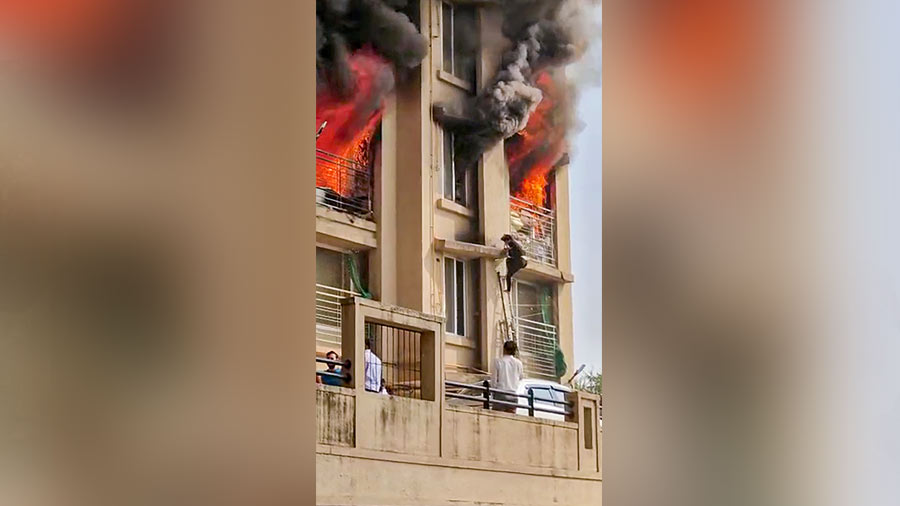The blaze erupted in the flat located on the third floor of Marina Enclave building in Jankalyan Nagar in Malad around 11 am.