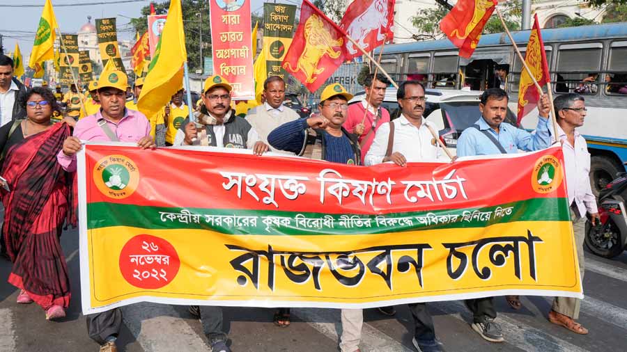 Farmer unions take out marches to Raj Bhavans across the country on Saturday to mark two years since they launched their agitation against the now-repealed three farm laws.
