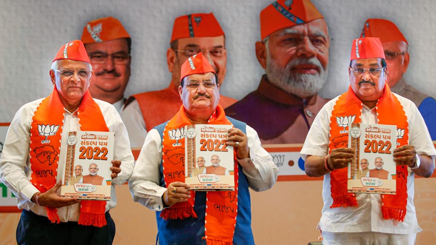The ruling Bharatiya Janata Party (BJP) on Saturday released its manifesto for the upcoming Gujarat Assembly polls and promised to implement the Uniform Civil Code (UCC) and also create an 'Anti-radicalisation Cell' to identify and eliminate potential threats as well as sleeper cells of terrorist organisations and anti-India forces.
