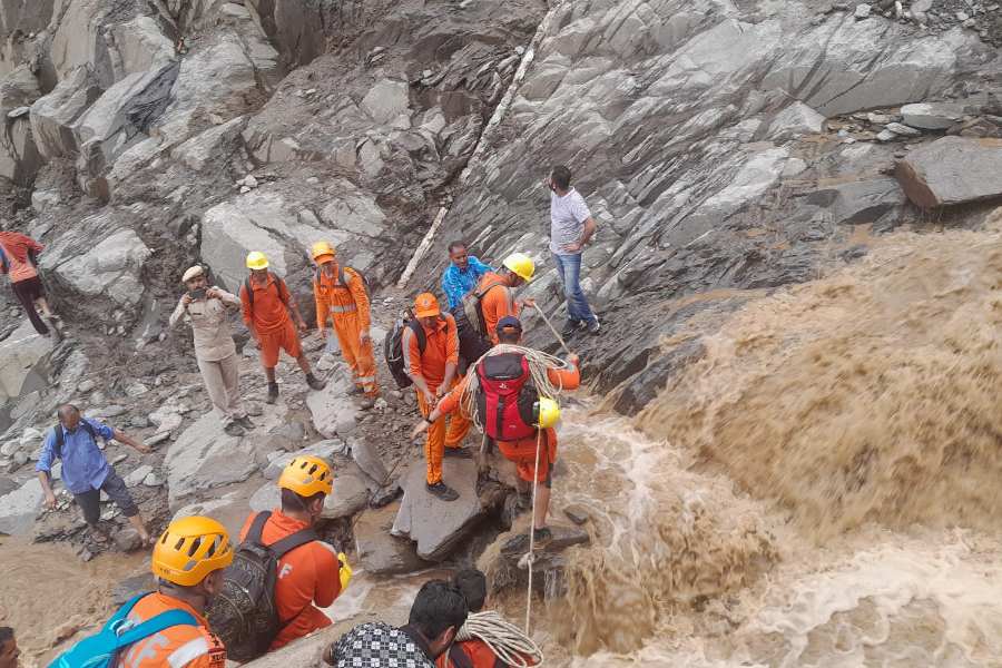 Over 50 people were stranded in Himachal Pradesh's Mandi district following a cloudburst and have been rescued by the NDRF. A team of the National Disaster Response Force (NDRF) travelled 15 km on foot to rescue the stranded people, including 15 children and shifted them to safe places. No loss of life was reported in the incident.