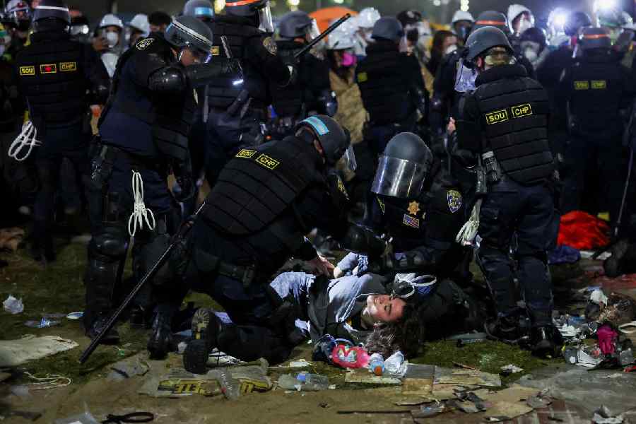 Hundreds of helmeted police muscled their way into a central plaza of the University of California at Los Angeles in a move to disperse a pro-Palestinian protest camp attacked the previous night by pro-Israel supporters. Starting around sunset on May 1, officers in tactical gear began filing onto the UCLA campus adjacent to a complex of tents occupied by throngs of demonstrators, live footage from the scene showed.